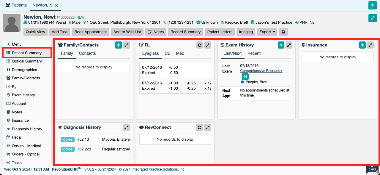 - For the setting Patients Default Summary View, click either Patient Summary or Optical Summary.