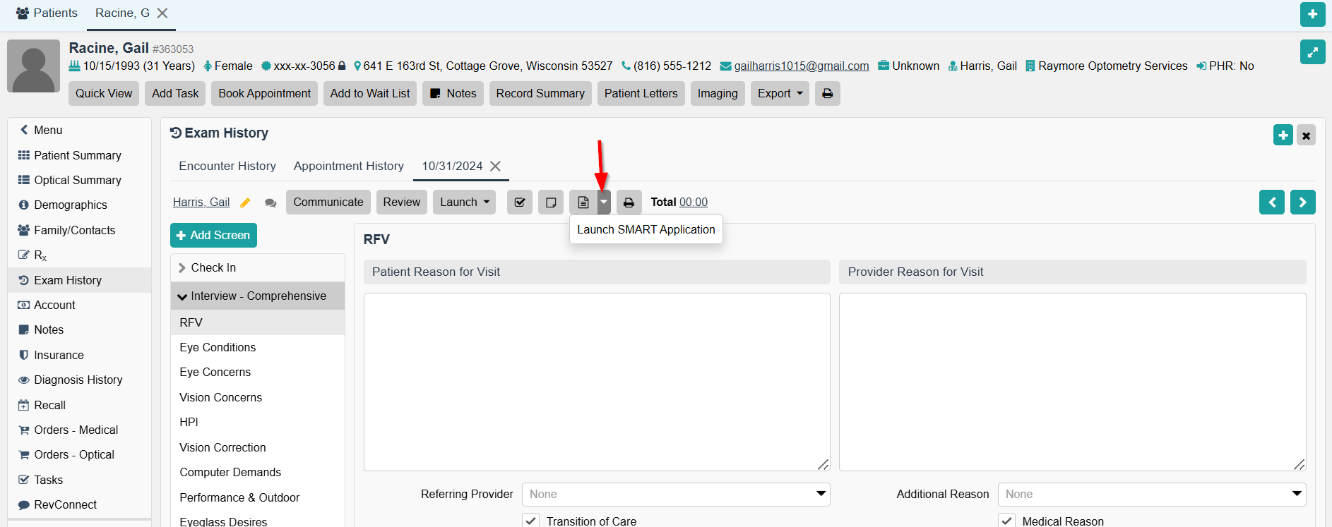 - In the encounter, click the dropdown menu arrow beside the Summary icon.