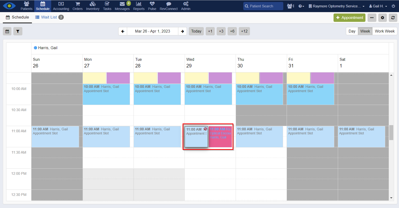 Appointment slots that have been previously scheduled and marked as a No Show can display on the schedule by setting your Custom Filter.