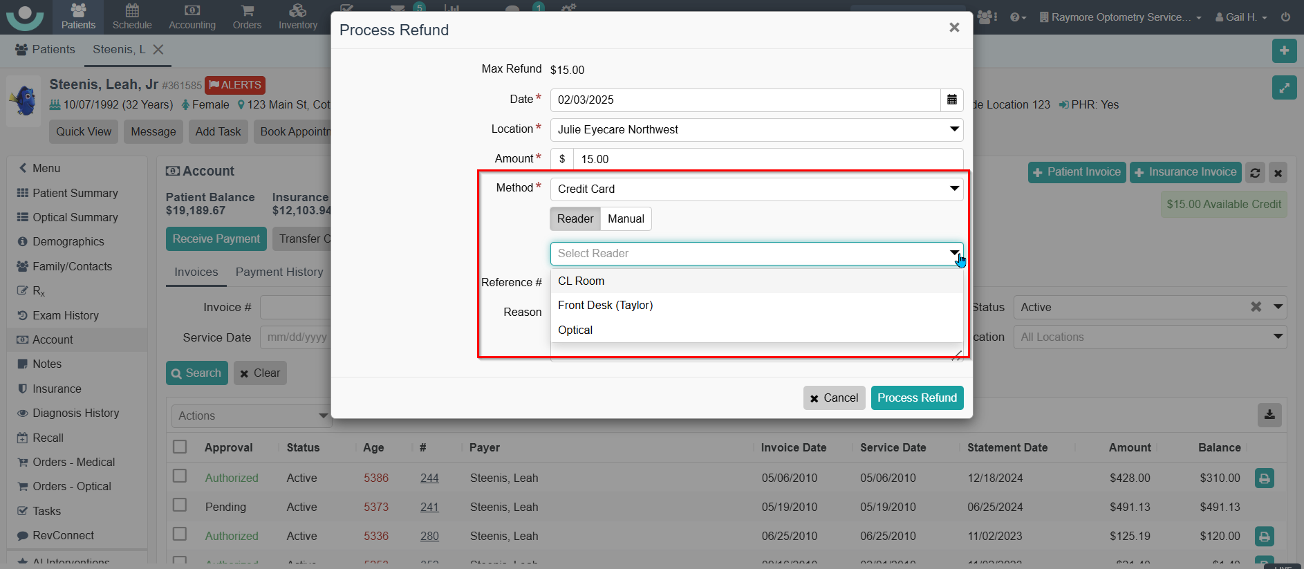 - The refund must be processed from the patient's accounting component. It cannot be processed through the "Grant Credit" screen that is within an invoice.
