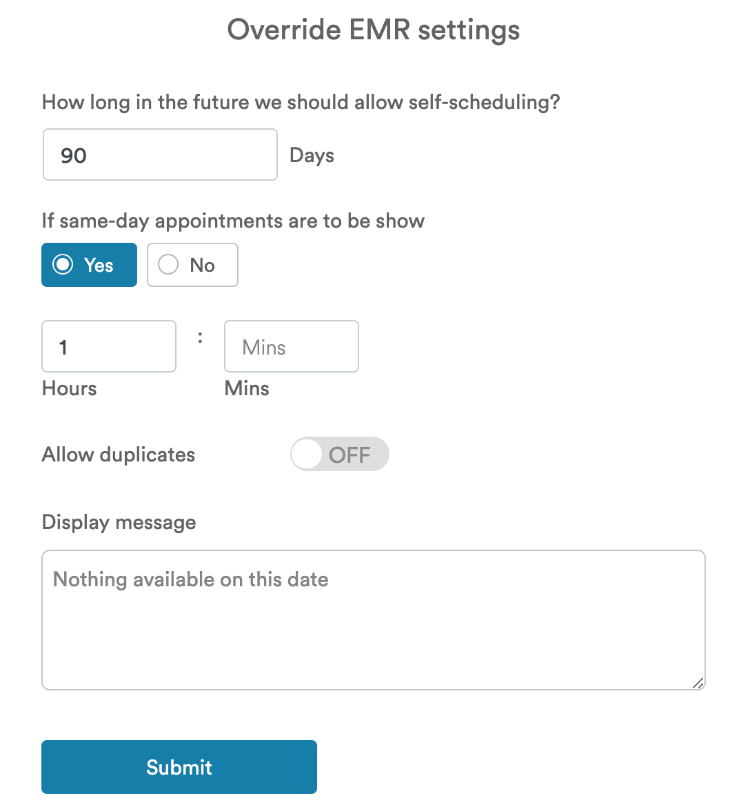 - Enter a title and description for the page that will display to patients when they enter required information to book their appointment.