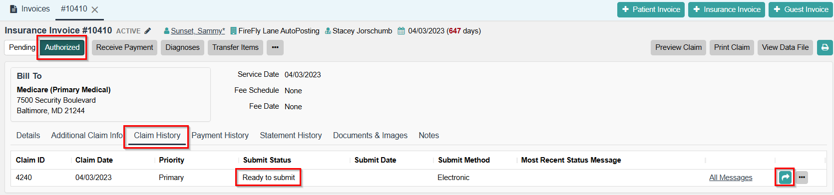 The following instructions are to send an 837 electronic claim file directly to the clearinghouse using the submit function.