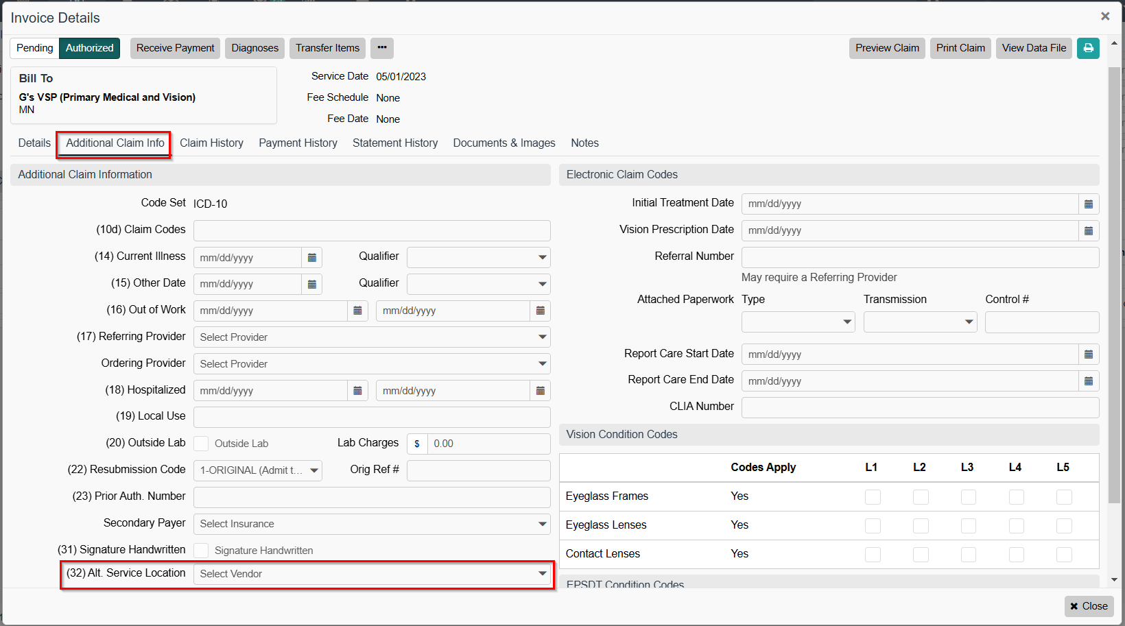 - Access the Additional Claim Info tab.