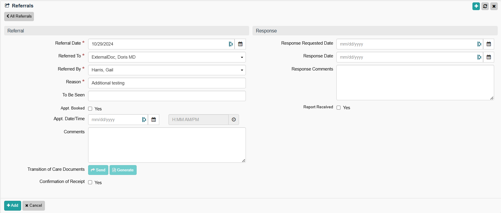 The following instructions are to add a referral to the patient's file.