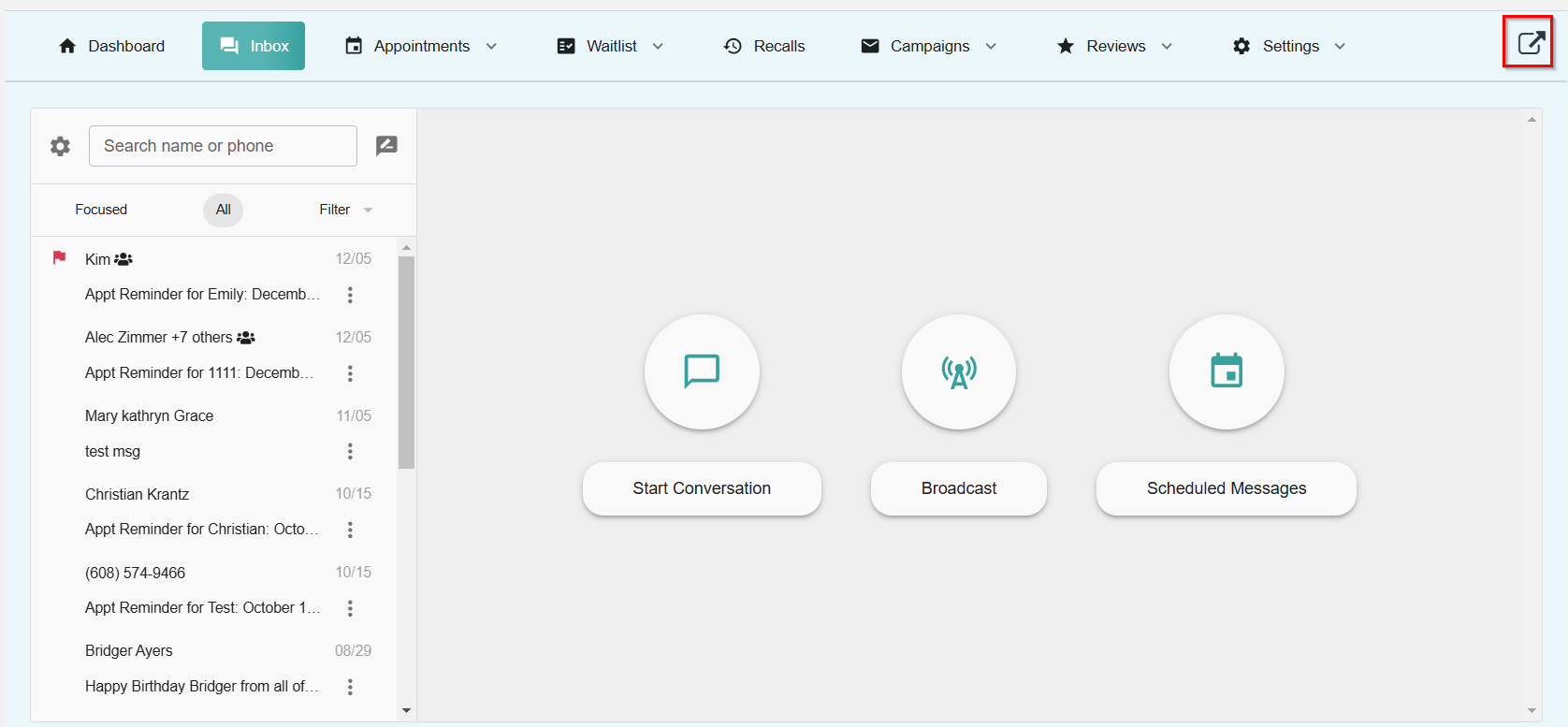 RevEngage needs to be opened within a new browser tab for the user to receive text message notifications. The following instructions are to open a new browser tab from within the RevEngage module.