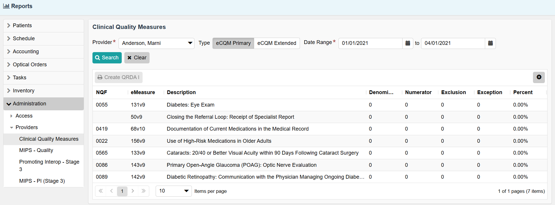Reports > Administration > Providers > Clinical Quality Measures.