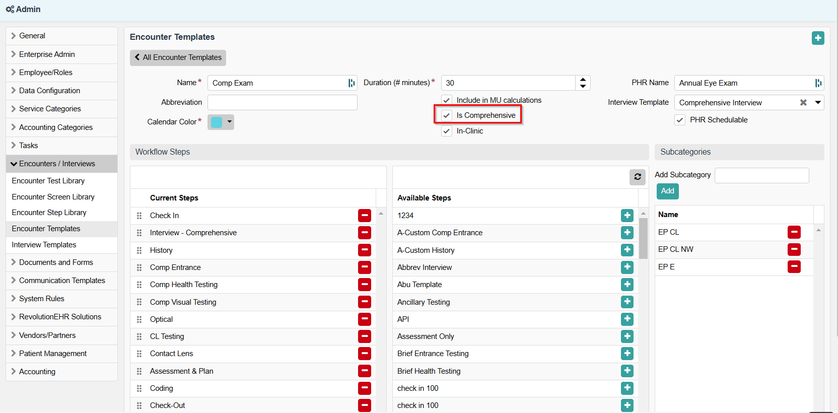 Recare will help recapture patients who have not had a comprehensive encounter within the specified time period and do not have an active recall or appointment scheduled for a comprehensive encounter. Note: Comprehensive encounter is defined as any encounter marked "Is Comprehensive" in Admin > Encounter/Interviews > Encounter Templates. See Example