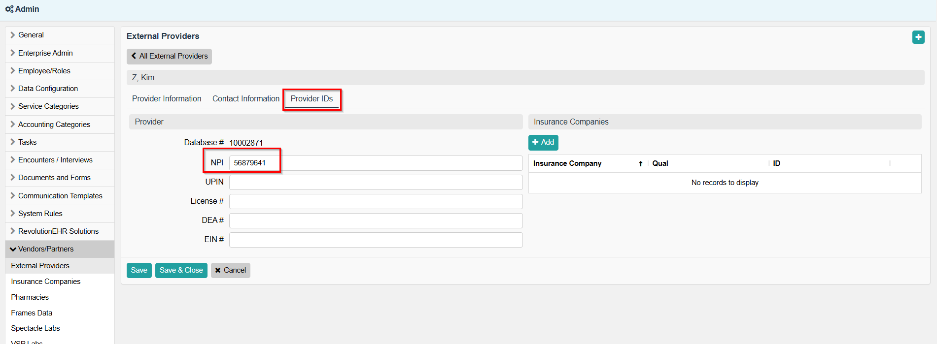 - Access Admin > Vendors/Partners > External Providers.