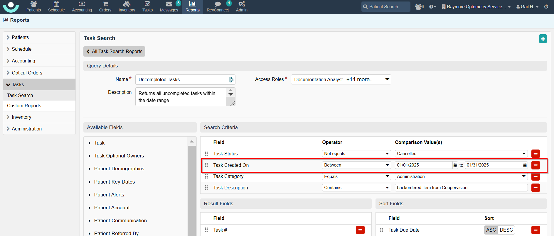 - Click the Run Report icon. The uncompleted tasks display in the grid.