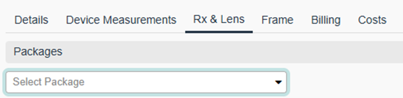 - Based on the package configuration the appropriate Lens Details may populate automatically. If the package is not set up with Lens Details, these will need to be selected manually.
