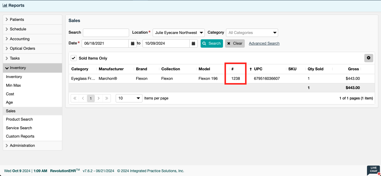- See Example from Inventory Sales Report.