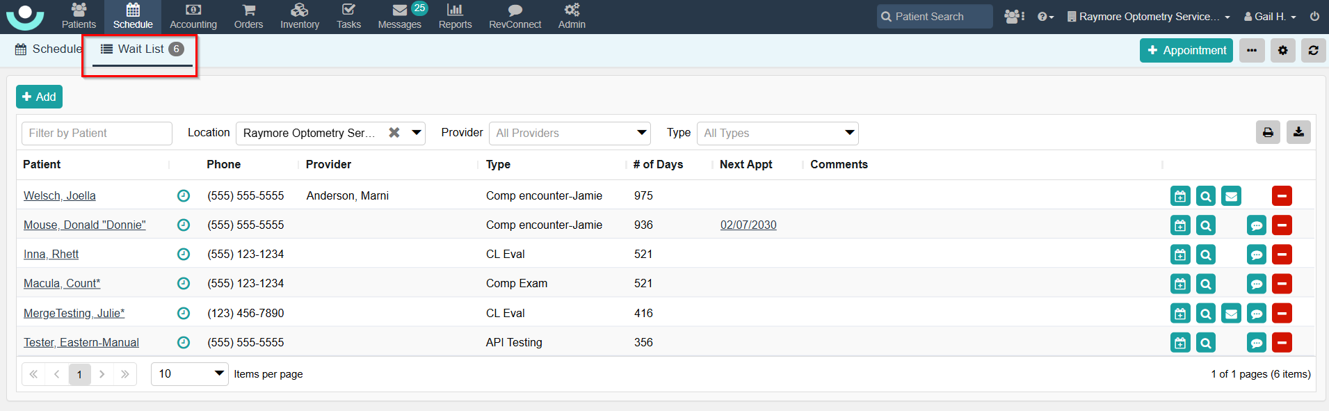 The Schedule module provides the ability to create a list of patients that want to be contacted if an appointment time opens that was previously not available.