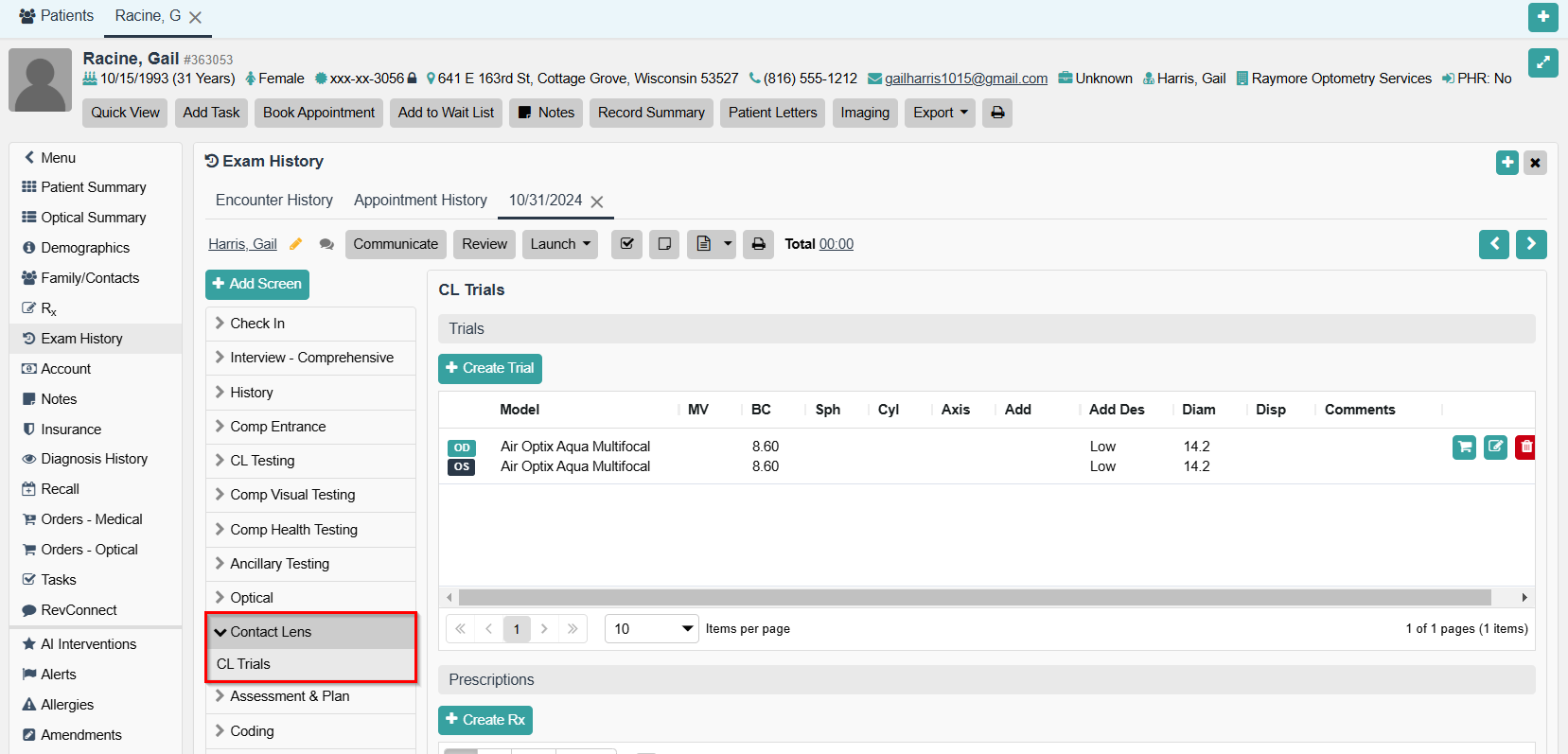 - In the Add Contact Lens Trial modal, click 'View History.'