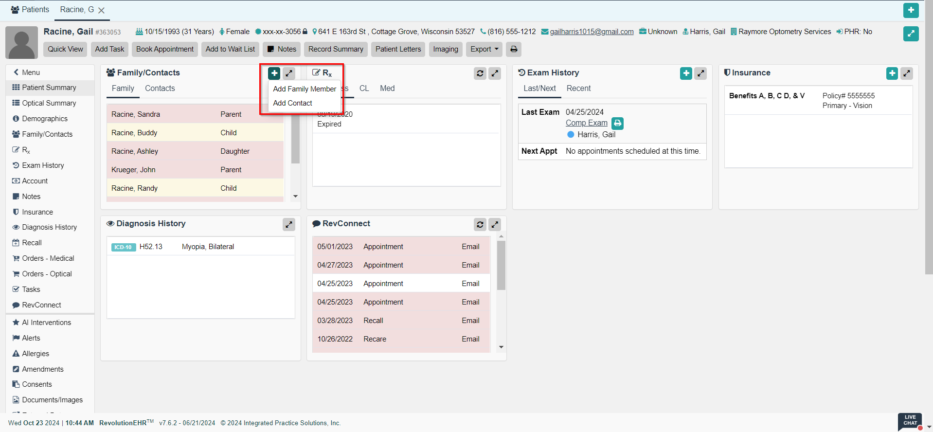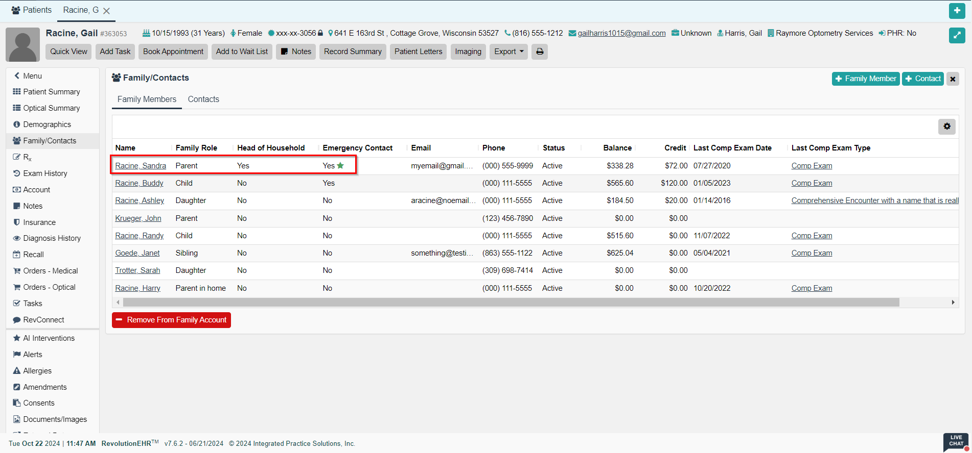 Emergency Contact information for a patient can be configured by accessing the Family/Contacts component. The following instructions are provided for the multiple ways the emergency contact can be added to the system.